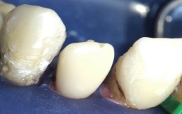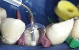 | 3. помещают колпачок на поврежденный зуб. | |