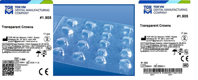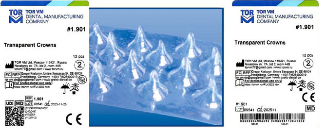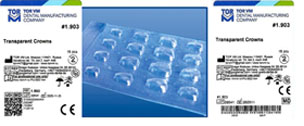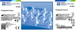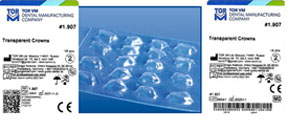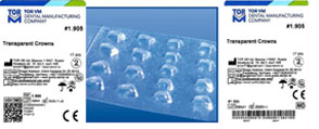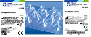We offer crowns for anteriors № 1.910, molars and premolars № 1.911, deciduous crowns № 1.912 and № 1.913 , conical crowns № 1.915 , and assorted crowns on plates №№ 1.901, 1.903, 1.905, 1.907, 1.908, 1.909 .